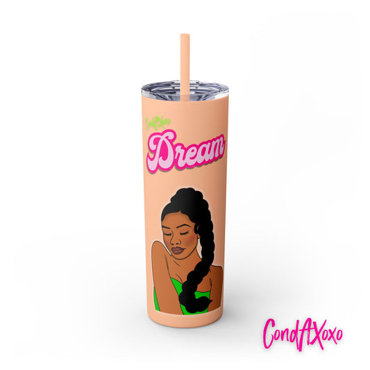 Dream Skinny Tumbler with Straw, 20oz (Green Logo) | Xoxo Market